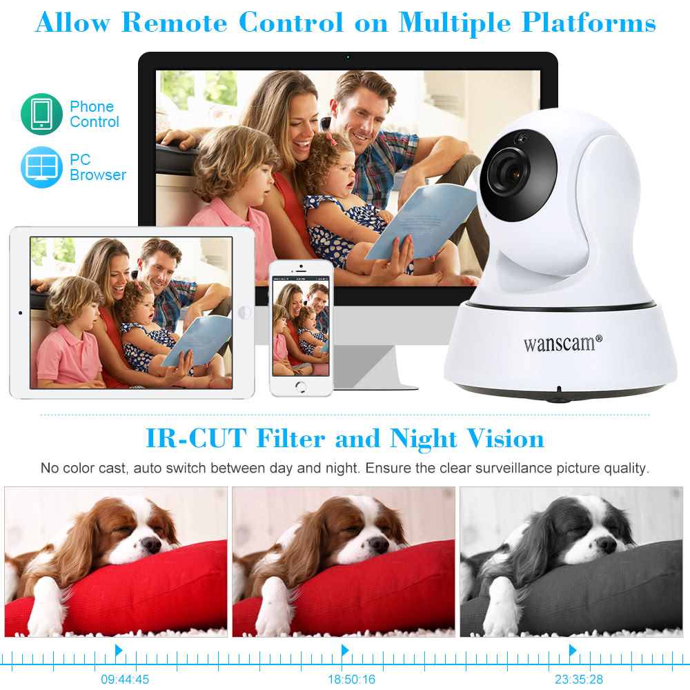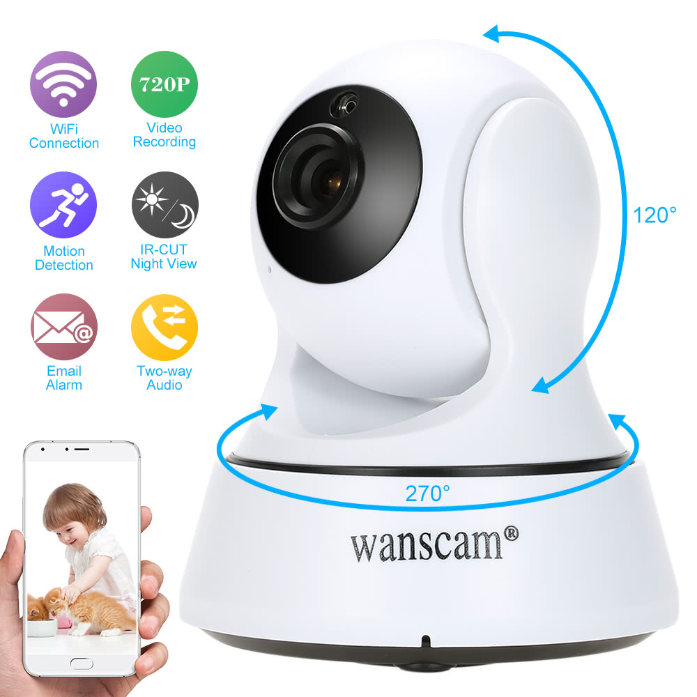 Wanscam HD 720P Megapixels Wireless WiFi Pan Tilt Network IP Cloud Indoor Camera support PTZ TF Card Record 2-way Talk P2P Android/iOS APP IR-CUT Filter Infrared Night View Motion Detection Email Alarm Browser View for CCTV Surveillance Security System